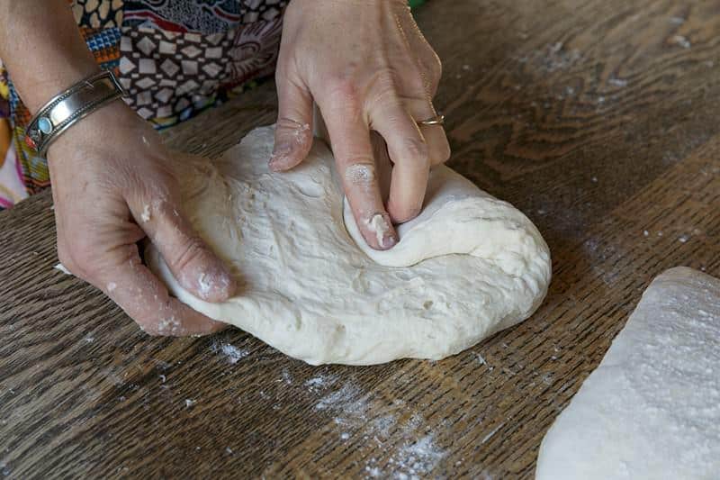 Portion the dough: If you have divided the dough into multiple portions, work with one piece at a time, keeping others covered to prevent drying out. Dust your hands with flour to prevent sticking.