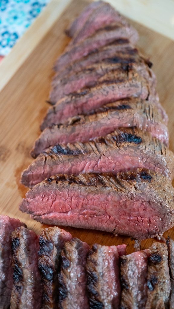 When I grill my steak I normally aim for an internal temperature of 140 degrees. I like grilling my steak a little on the rare side since tri-tip steaks make great leftovers.