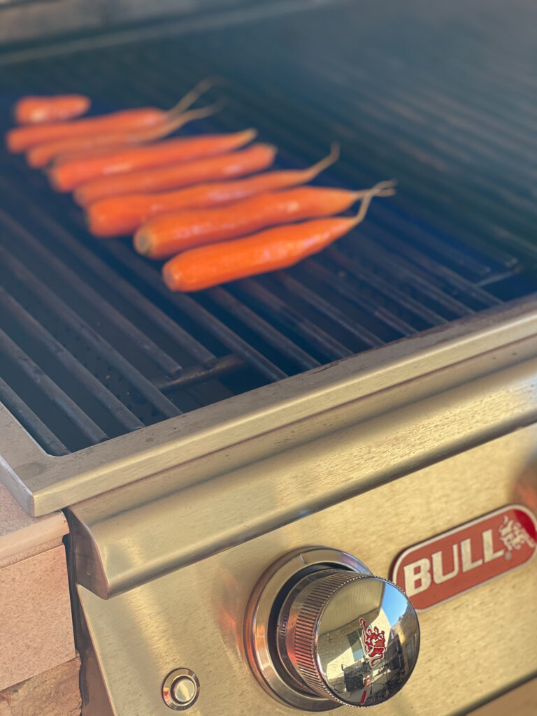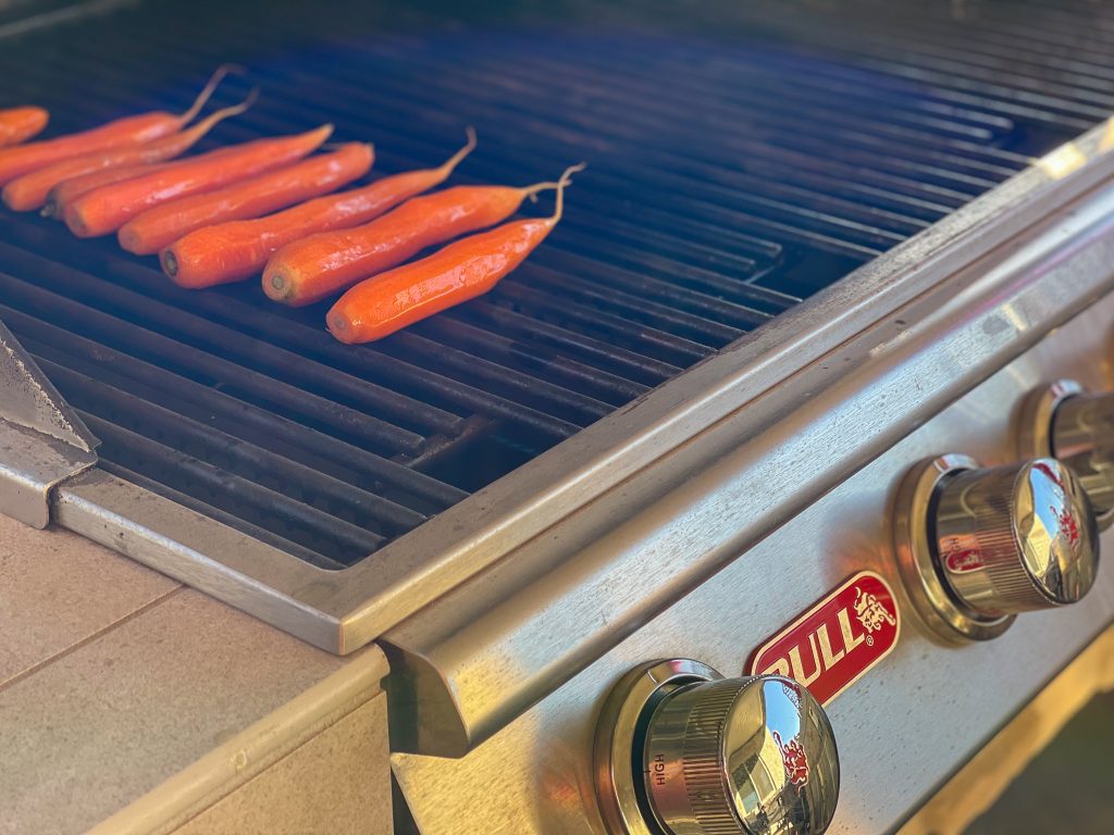 2. Place carrots on a Bull Grill preheated to medium. Cook for about 10 to 12 minutes with the lid closed, turning once during grilling. The carrots should develop slight char marks before turning.