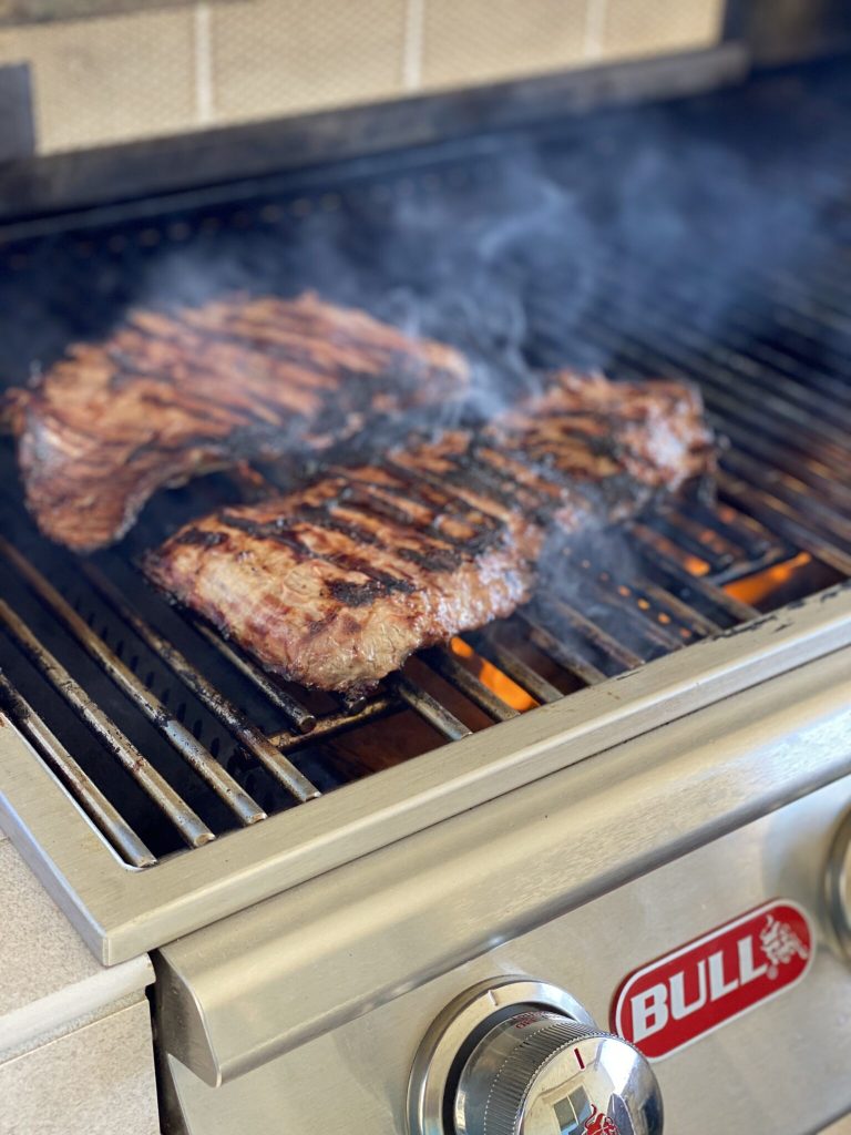 2. Preheat Bull Grill to medium heat and grill tomatillos, peppers, and onion for about 4 minutes on each side or until grill marks begin to form.