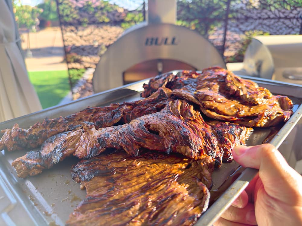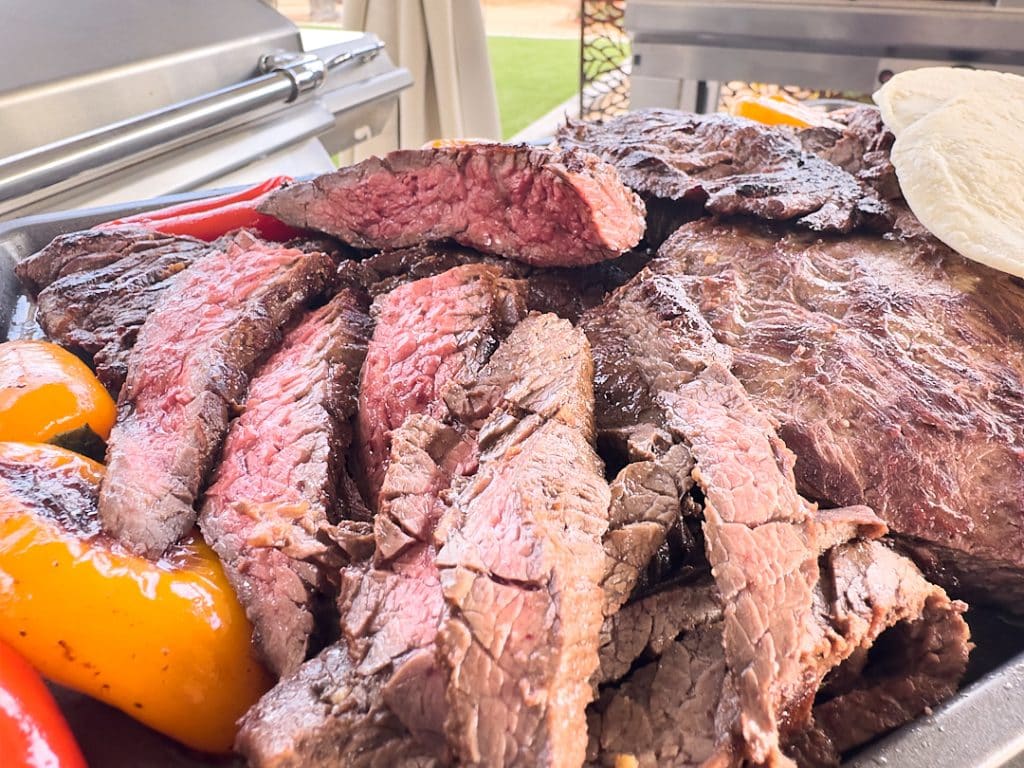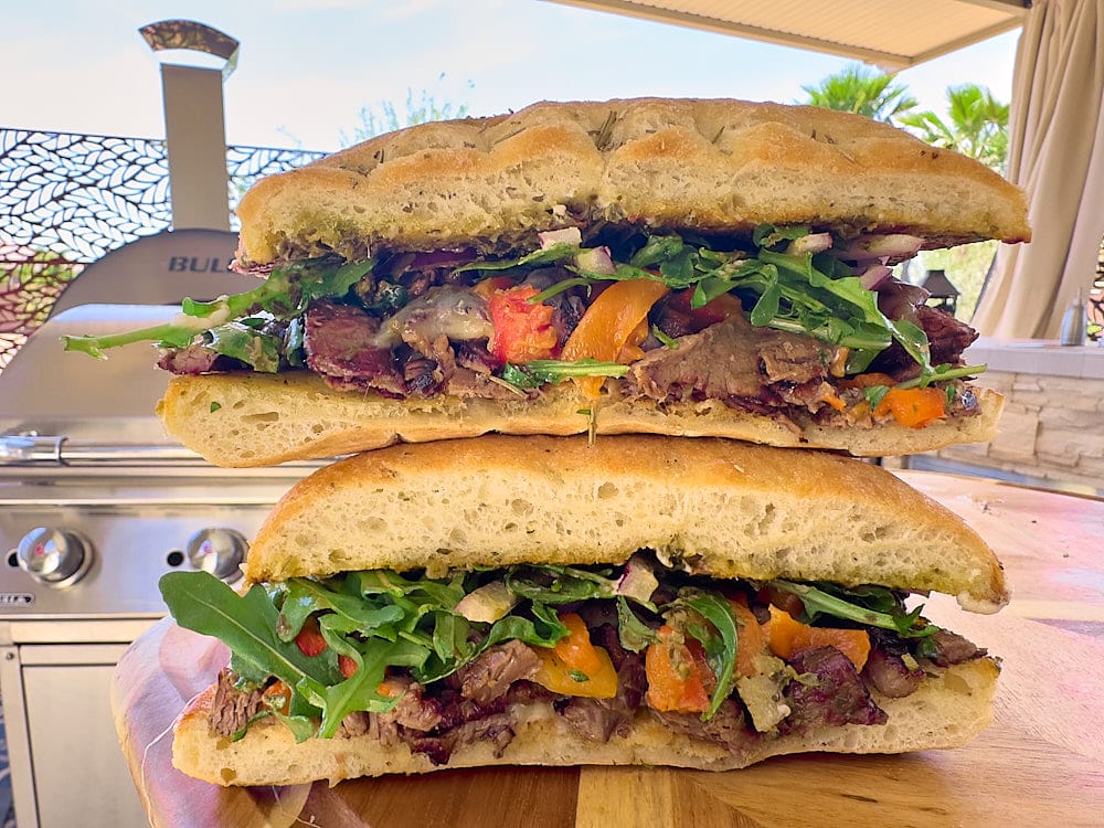 Whether you are using leftover steak or grilling up a fresh batch, Italian Steak Sandwiches are always a tasty meal. I use a Bull Griddle or Bull Griddle Slide in Removeable for this recipe, but it can also quickly be grilled on a Bull Gas Grill. Italian steak sandwiches are a great way to use steak leftovers, although that rarely happens at my house. I love using the griddle to get focaccia perfectly toasty, which dramatically adds to the flavor profile of this easy sandwich. The superior construction of the Bull Griddle heats evenly, allowing you to grill the steak and toast the bread evenly. Although I prefer a skirt or flank steak, thinly sliced ribeye or sirloin would also work wonderfully.