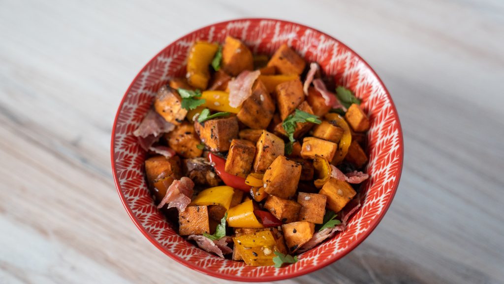To quote Ferris Bueller “Life moves pretty fast…” which is why I love it when I can make an amazing dish quickly. Sweet potatoes are one of my family’s favorite sides and extremely easy to cook on a Bull Grill. Not only are weet potatoes taty but they are packed with awesome nutrients. This dish is so amazing that it can easily transform from side dish to a main dish by adding a little protein.