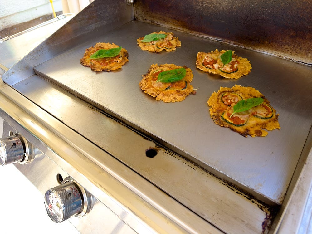 Zucchini Parmesan Fricos are a fantastic and easy appetizer to grill on your Bull Griddle or Slide-In Griddle. Oftentimes called Parmesans Crips, Fricos, are made primarily from parmesan cheese that has melted then crisped. This low-carb recipe is excellent on its own or as an appetizer or accompaniment for pasta or salads. The key to creating this recipe is maintaining a constant and even temperature to prevent the frico from burning, which is easy when using the chromium-plated griddle found on a Bull Griddle.